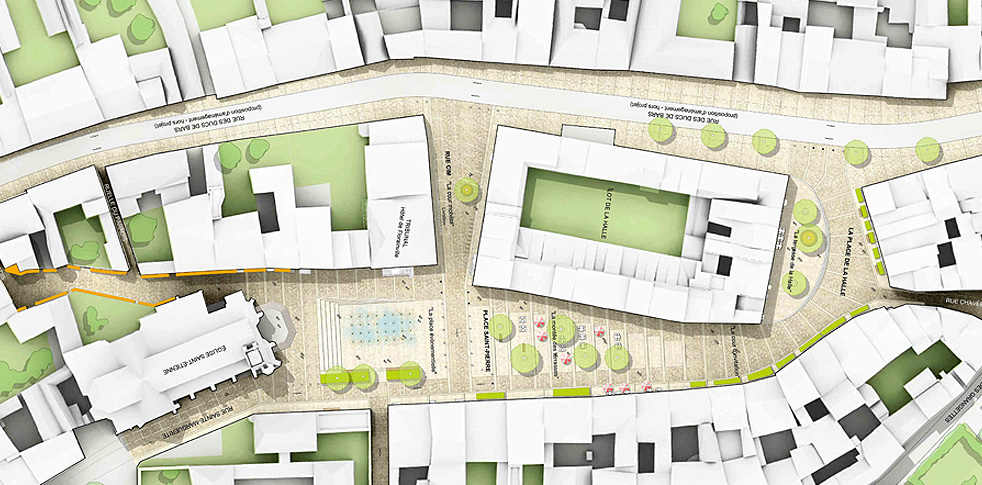La place Saint-Pierre La place Saint-Pierre est le véritable cœur du quartier Renaissance et un emplacement stratégique pour le renouveau du quartier. Elle constitue en effet aujourd’hui l’élément urbain le plus attractif de la Ville-Haute. Sa forme évasée qui s’ouvre et monte progressivement vers l’église Saint-Etienne est une véritable mise en scène perspective de l’architecture flamboyante de celle-ci. |