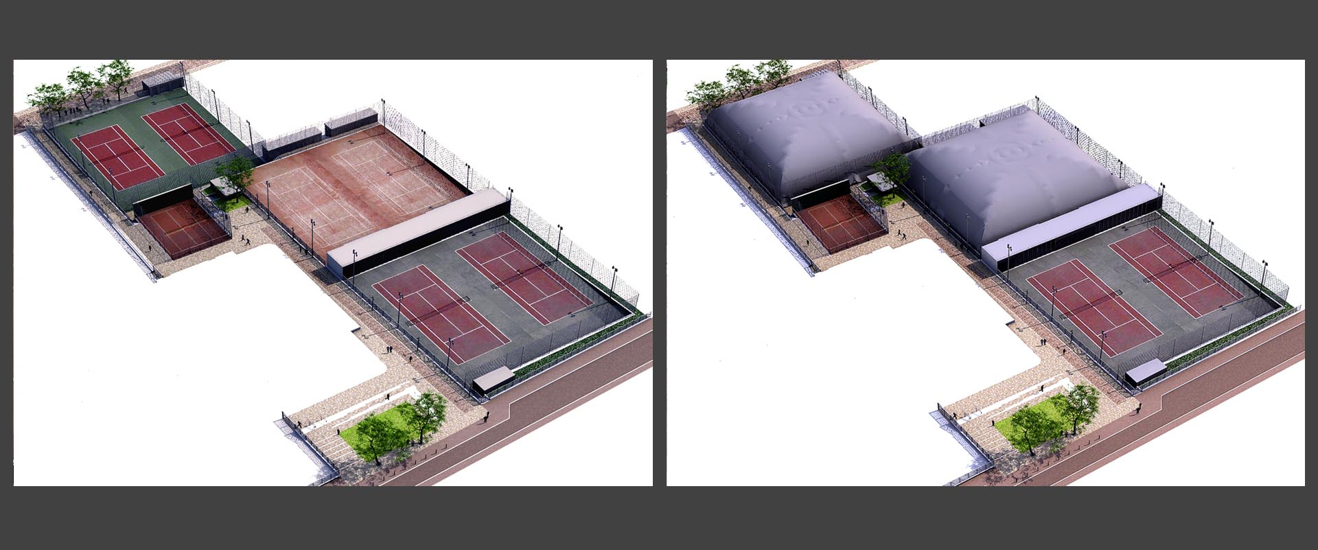 Les clôtures L’une des propositions de projet consiste à installer le passage au milieu des tennis. Bien qu’étroit il offre des vues intéressantes sur les courts de tennis et une ambiance particulière. Les clôtures sont imaginées en vue d’introduire à l’intérieur du site sportif un décor urbain. |