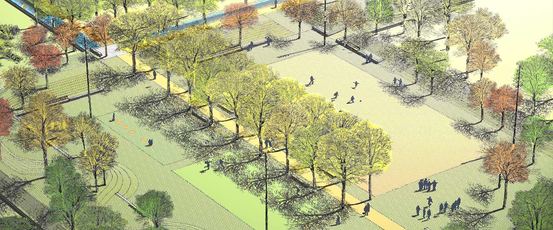 Projet :Aménagements des espaces publics du Quartier de Presles à Soissons Maître de l’ouvrage : Ville de Soissons Architecte paysagiste: Agence de paysages Yuli ATANASSOV (sous-traitant) BET VRD: Sogeti Ingénierie (mandataire) Mission : Maîtrise d’oeuvre Surface : 36 000 m² |