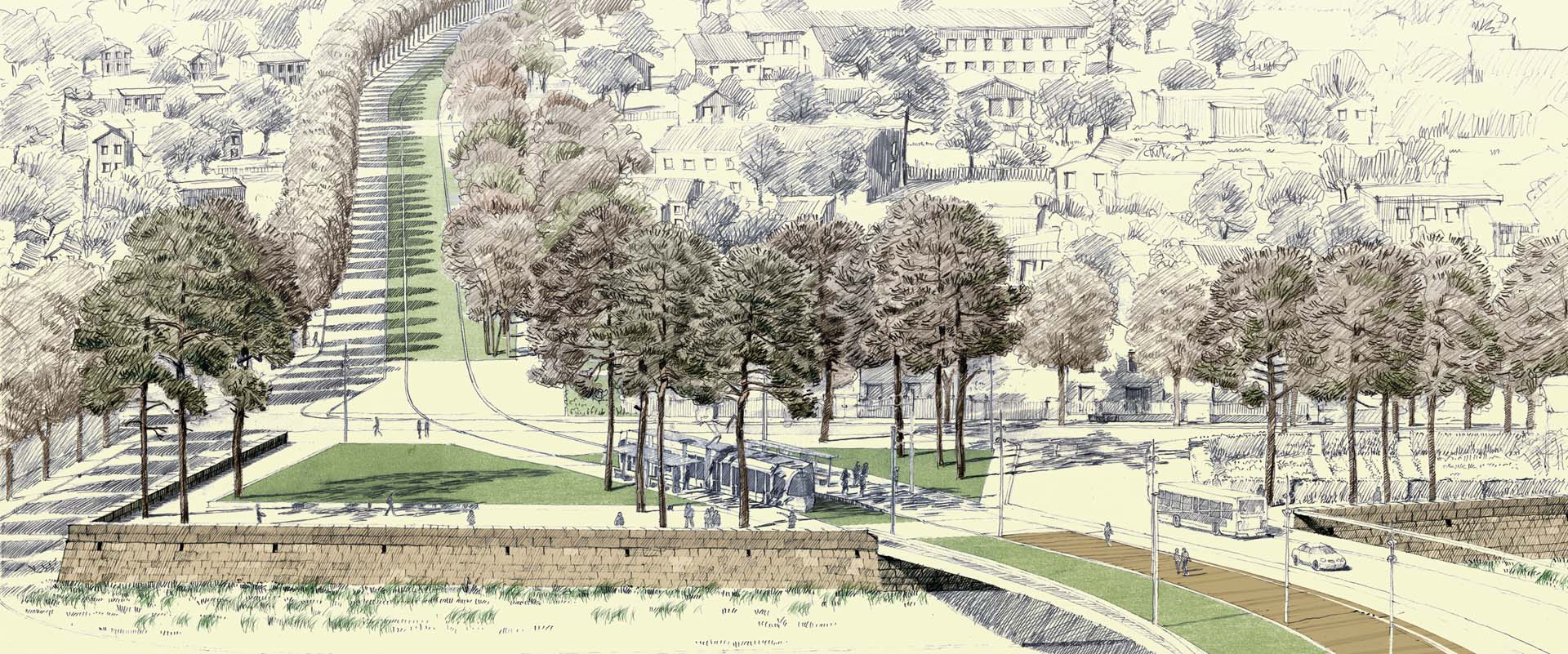Le tramway T1 est un projet à grande échelle, aussi bien dans l’espace que dans le temps. Il fait partie des grands projets structurant la banlieue est parisienne, offrant aux villes qu’il traverse, non seulement un moyen de transport rapide et écologique, mais aussi une occasion rare de développement. Le tramway entraîne une dynamique qui permet aux villes de faire des projets d’avenir sur le long terme. Dans toute la panoplie de projets urbains qui accompagnent le tramway, et à travers les paysages très variés qu’il rencontre, le T1 se doit d’adopter une logique d’aménagement qui lui est propre. Les lieux qu’il crée dans son parcours doivent garder |