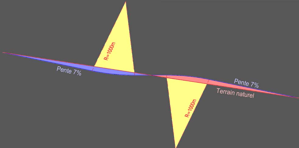 Les contraintes techniques Le tramway qui doit gravir la rue des Ruffin est encore en étude. La future rame doit pouvoir monter et descendre une pente de 7% avec pour contrainte un tracé en ligne droite. La grande difficulté vient du fait que les rues perpendiculaires ne peuvent traverser la plateforme avec un dévers aussi important. Le profil en long du tracé doit faire “une vague “et rendre les carrefours relativement plats. Ici vient s’ajouter une nouvelle contrainte technique: le rayon de courbure entre deux pentes ne peut descendre en dessous de 1000m. L’insertion du tramway dans le site des Ruffins s’est avérée complexe. |